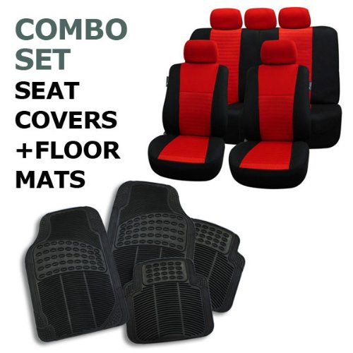 !9# FH-FB060115 + R11305: Red Airbag Compatible Seat Covers and Black Rubber Floor Mats
